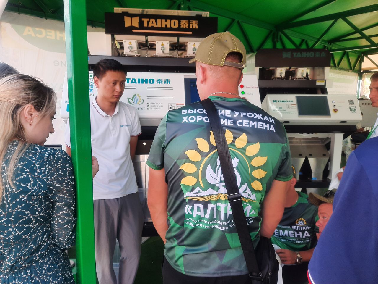 Значительный интерес вызвала демонстрация работы современного фотосепаратора TAIHO Observation PRO. Особенность аппарата заключается в установке 90 высокоскоростных эжекторов на одном лотке. Оснащен режимом глубокого интеллектуального обучения для удаления примесей по цвету, форме и структуре. Эта компактная установка обеспечивает высокое качество сортировки зерновых культур благодаря современному сканированию каждого зерна. Посетители могли убедиться лично, как эффективно эта техника отделяет примеси и дефектные семена пшеницы, сои и гороха.