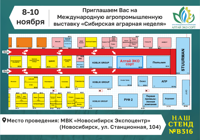 Наша компания участвует в выставке и приглашает всех наших клиентов, партнеров и тех, кто давно хотел пообщаться с нами и познакомиться с нашим товаром/услугой, на крупнейшее агропромышленное мероприятие в Сибири и Дальнем Востоке.