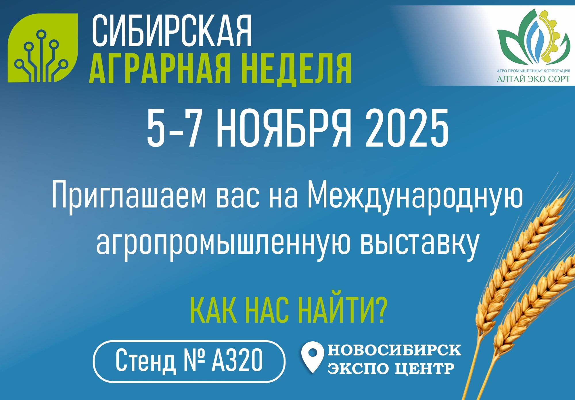 Компания «АПК «Алтай ЭКО сорт» приглашает профессионалов отрасли посетить наш стенд №А320 и познакомиться с передовыми решениями в области сортировки и очистки зерновых культур.