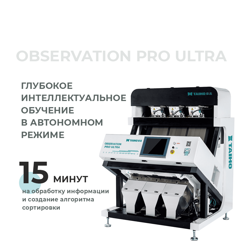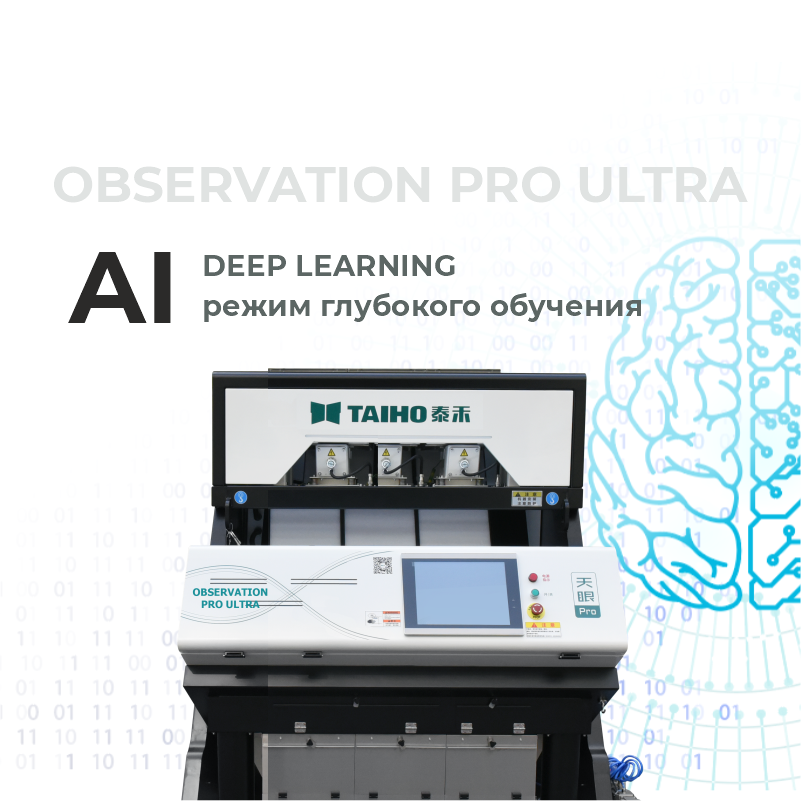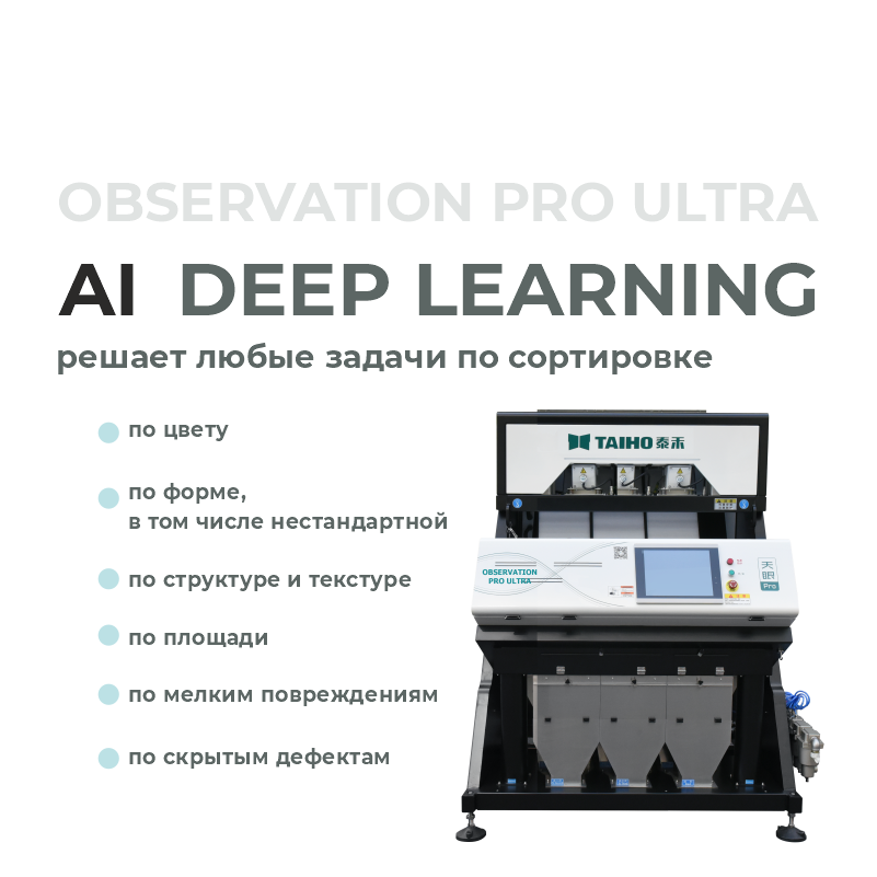 - Интеллектуальная сортировочная платформа нового уровня. Двойная сортировка по форме и цвету с использованием ИИ для обнаружения дефектов зерна в высоком разрешении