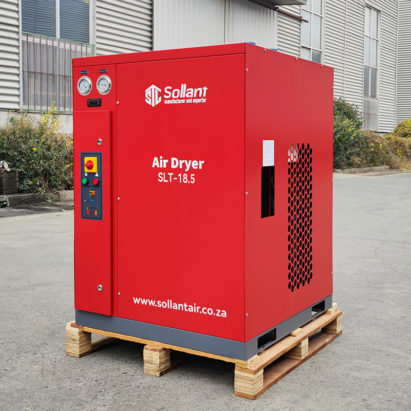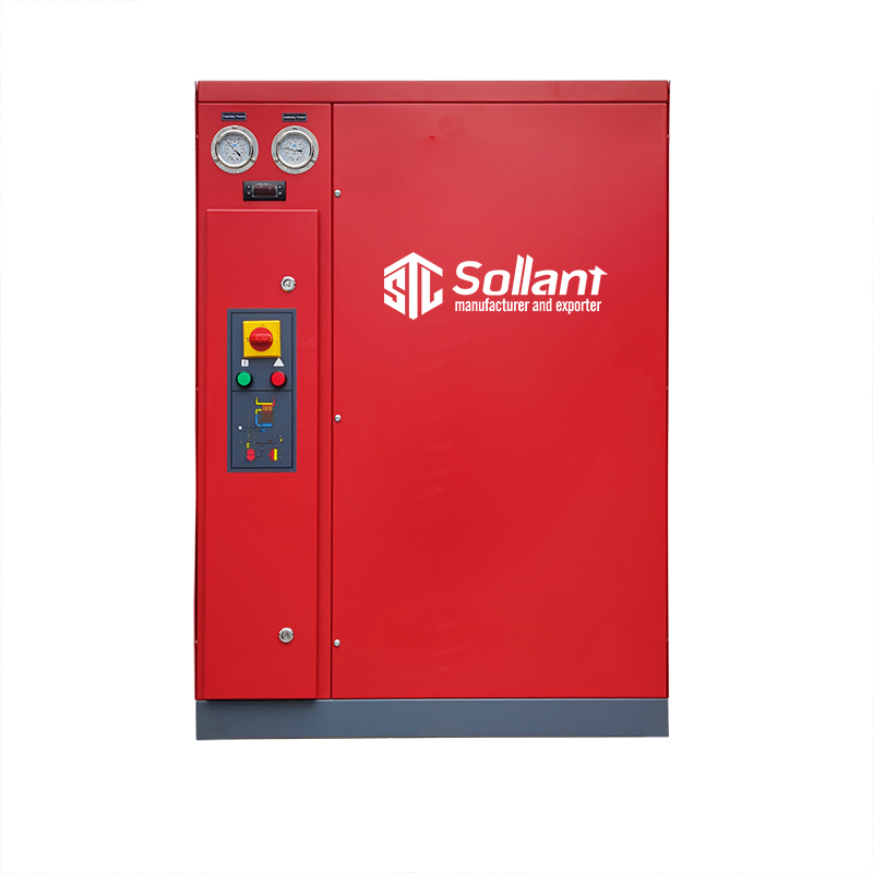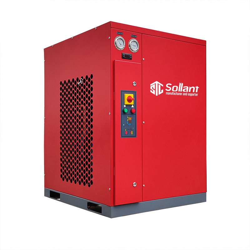– Рефрижераторный осушитель Sollant оснащён пластинчато-ребристым теплообменником из алюминиево-магниевого сплава. Благодаря высокой эффективности теплообмена, требуется примерно на 25% меньше холодопроизводительности по сравнению с кожухо-трубчатым рефрижераторным осушителем. В конденсаторах используются медные трубки с внутреннем оребрением, что повышает эффективность теплообмена примерно на 20% по сравнению с гладкими трубками, используемыми другими брендами. Рефрижераторный осушитель Sollant оснащен клапаном перепуска горячего газа, что позволяет произвести, при необходимости, тонкую регулировку точки росы.-