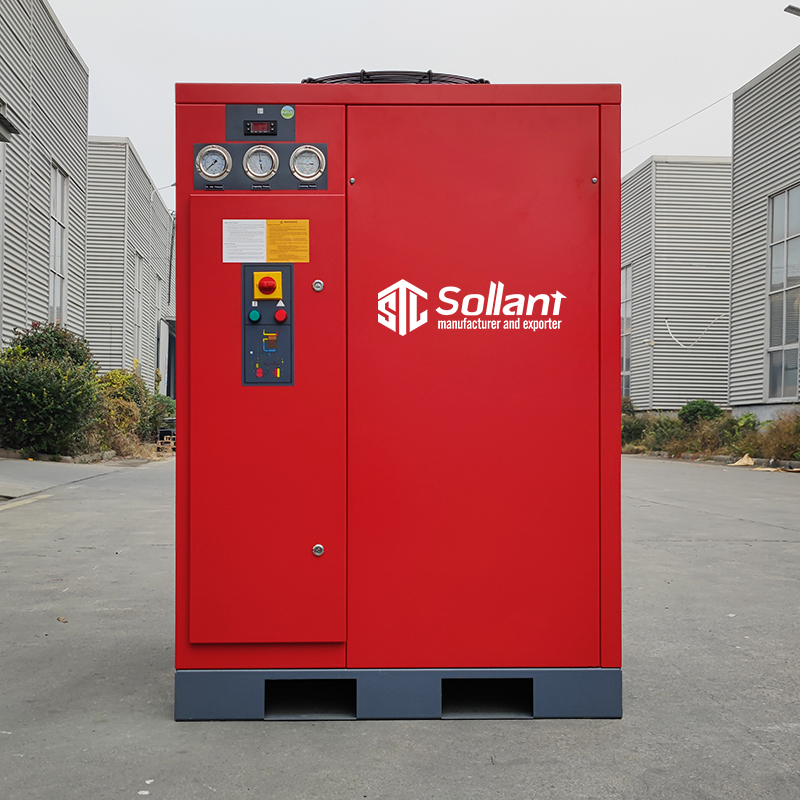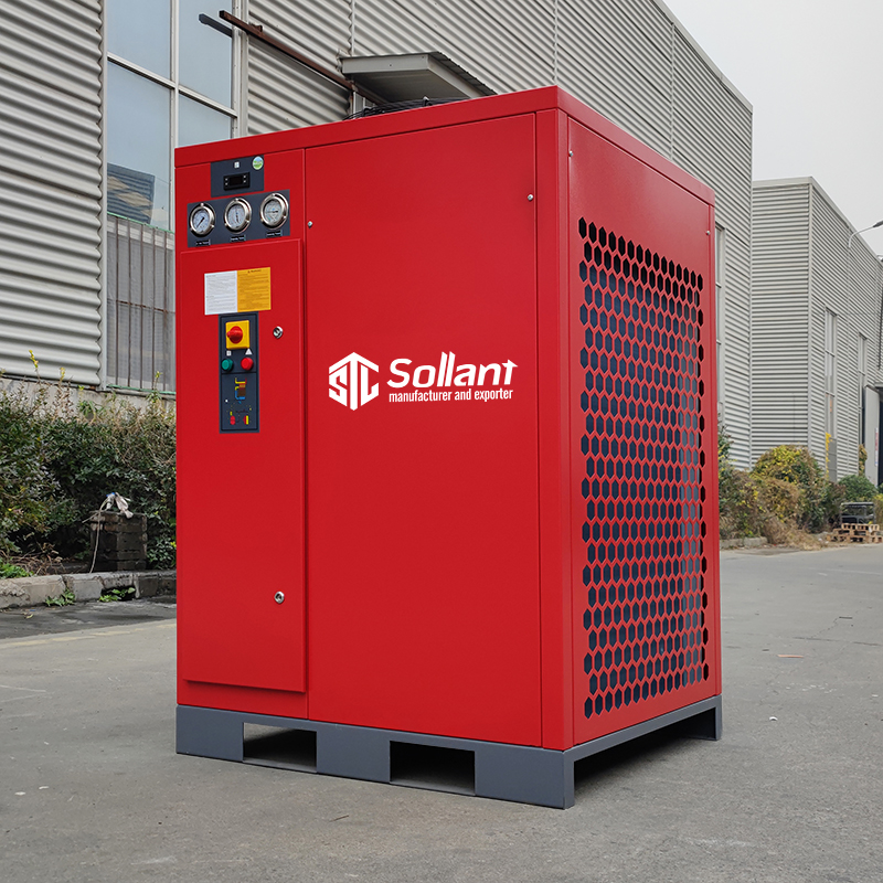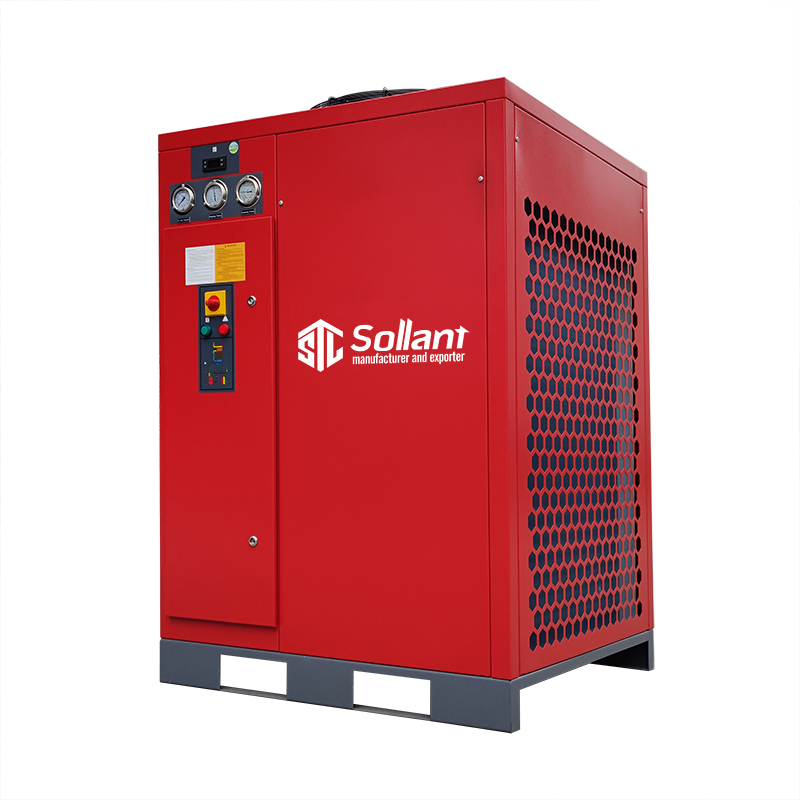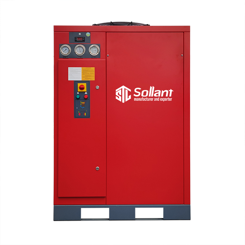 – Рефрижераторный осушитель Sollant оснащён пластинчато-ребристым теплообменником из алюминиево-магниевого сплава. Благодаря высокой эффективности теплообмена, требуется примерно на 25% меньше холодопроизводительности по сравнению с кожухо-трубчатым рефрижераторным осушителем. В конденсаторах используются медные трубки с внутреннем оребрением, что повышает эффективность теплообмена примерно на 20% по сравнению с гладкими трубками, используемыми другими брендами. Рефрижераторный осушитель Sollant оснащен клапаном перепуска горячего газа, что позволяет произвести, при необходимости, тонкую регулировку точки росы.-