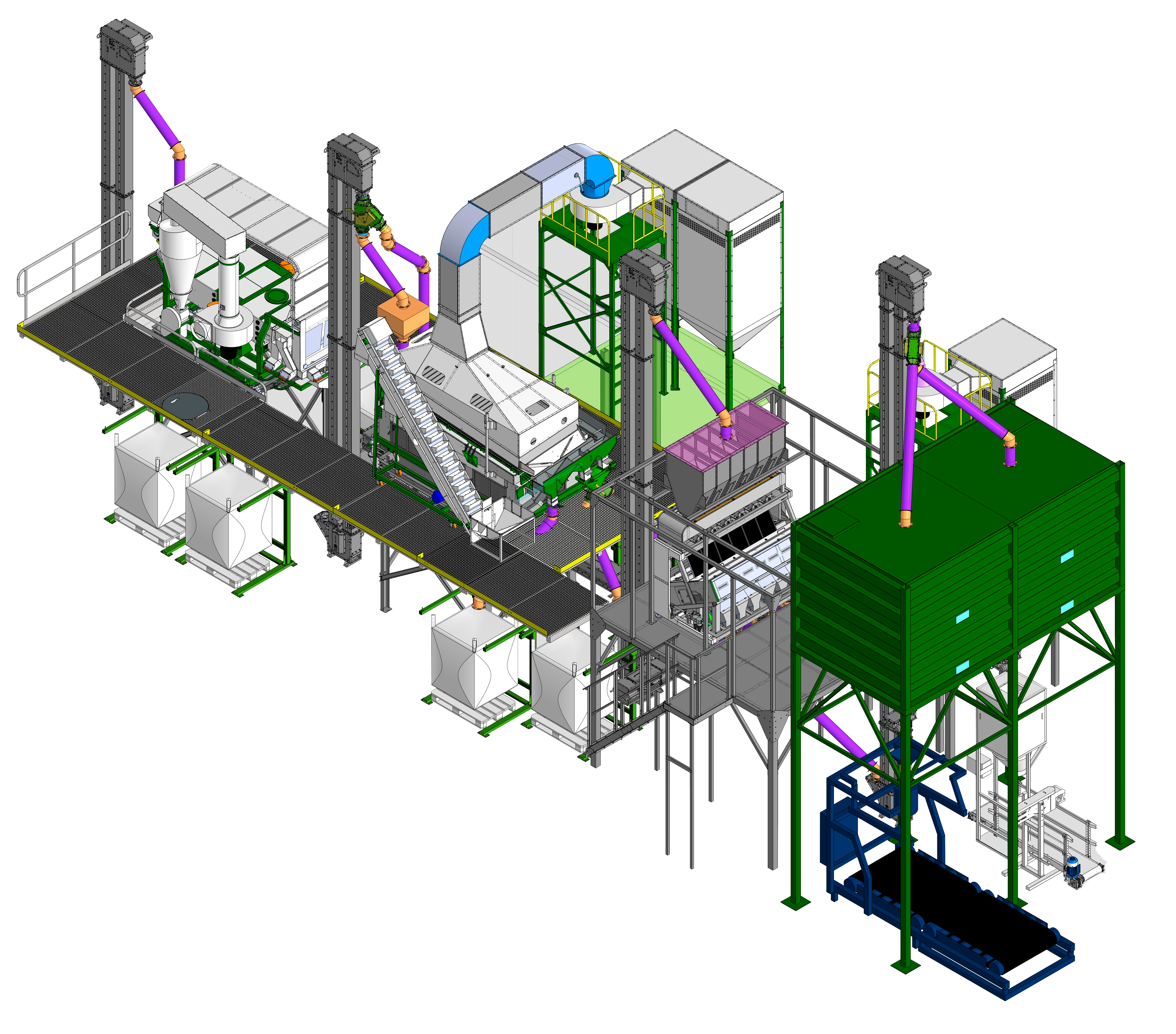 На основании технического задания специалисты нашей компании подготавливают эскизное решение в 3D, с указанием размеров помещения, необходимых для размещения и эксплуатации семенной линии.