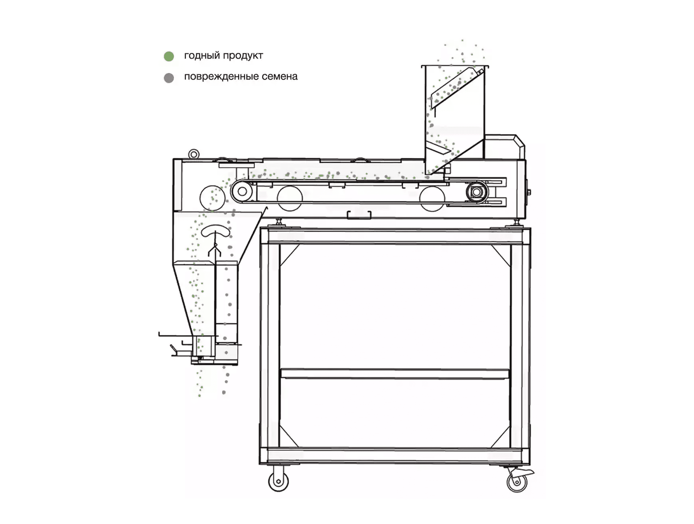 Сепаратор очищает продукт с неравномерной плотностью распределения по поверхности и позволяет избежать повреждений зерна в отличии от вибрационного способа очистки.